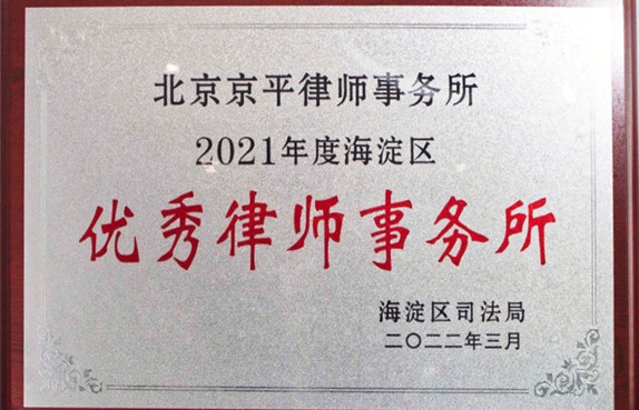 • 北京京平律師事務所榮獲2022年度海淀區“優秀律師事務所”稱號